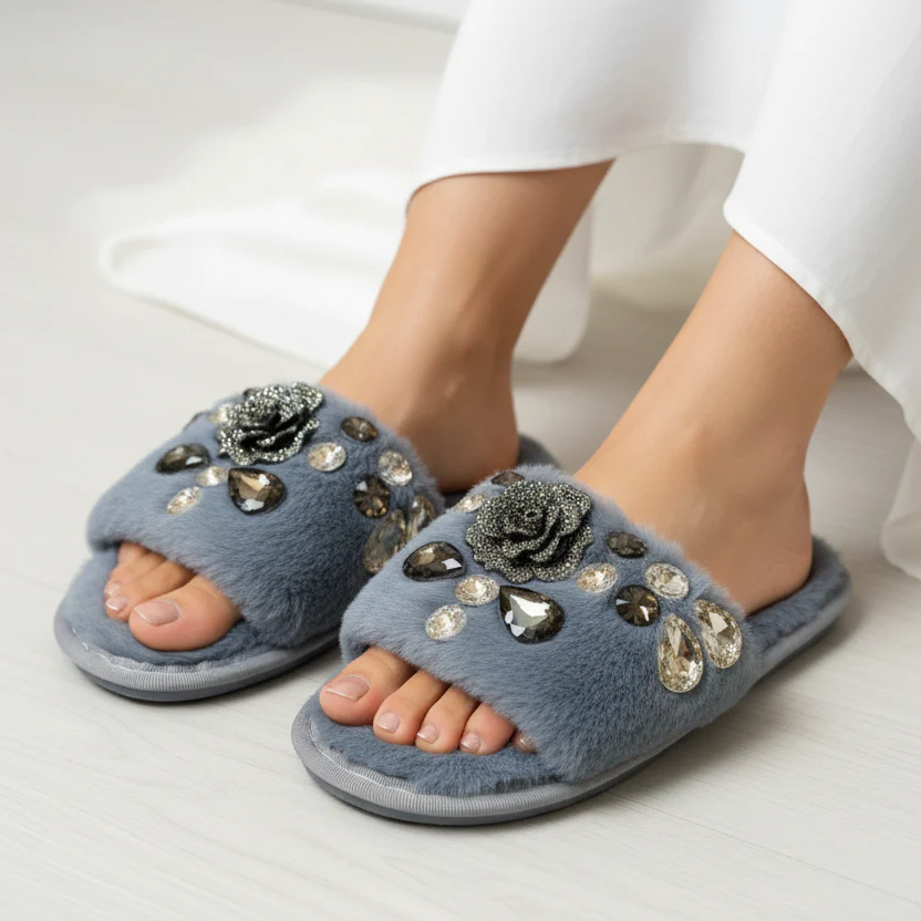 The Grace Up Softie S81 features full fur construction for enhanced comfort, making it an ideal choice for extended wear. The addition of decorative stones provides a stylish element without compromising the overall softness. This combination offers both aesthetic appeal and functional comfort, suitable for various settings.